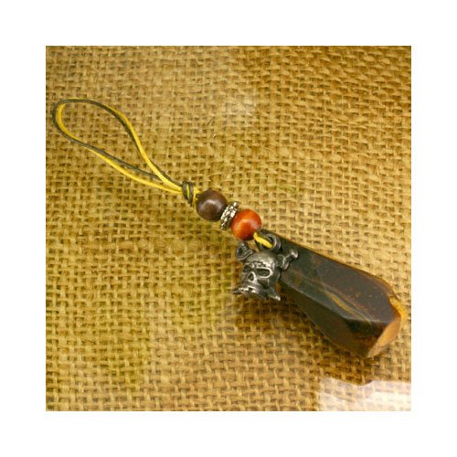 パイレーツ・オブ・カリビアン のイメージ商品だがドクロマーク以外は映画を連想させることはなく通常のアイテムとしてもお洒落に使える。特に荒削りの原石がとてもカッコ良い。とても気に入って使っていたが致命的な欠陥があった。ストラップ部分が紐なのだがこの紐の耐久性が極端に弱い。原石と擦れた部分から徐々に切れ始め、1ヶ月も使えば完全に切れてしまう。非常に残念。紐の部分を自作で取り替えれば使えるので工夫が必要。